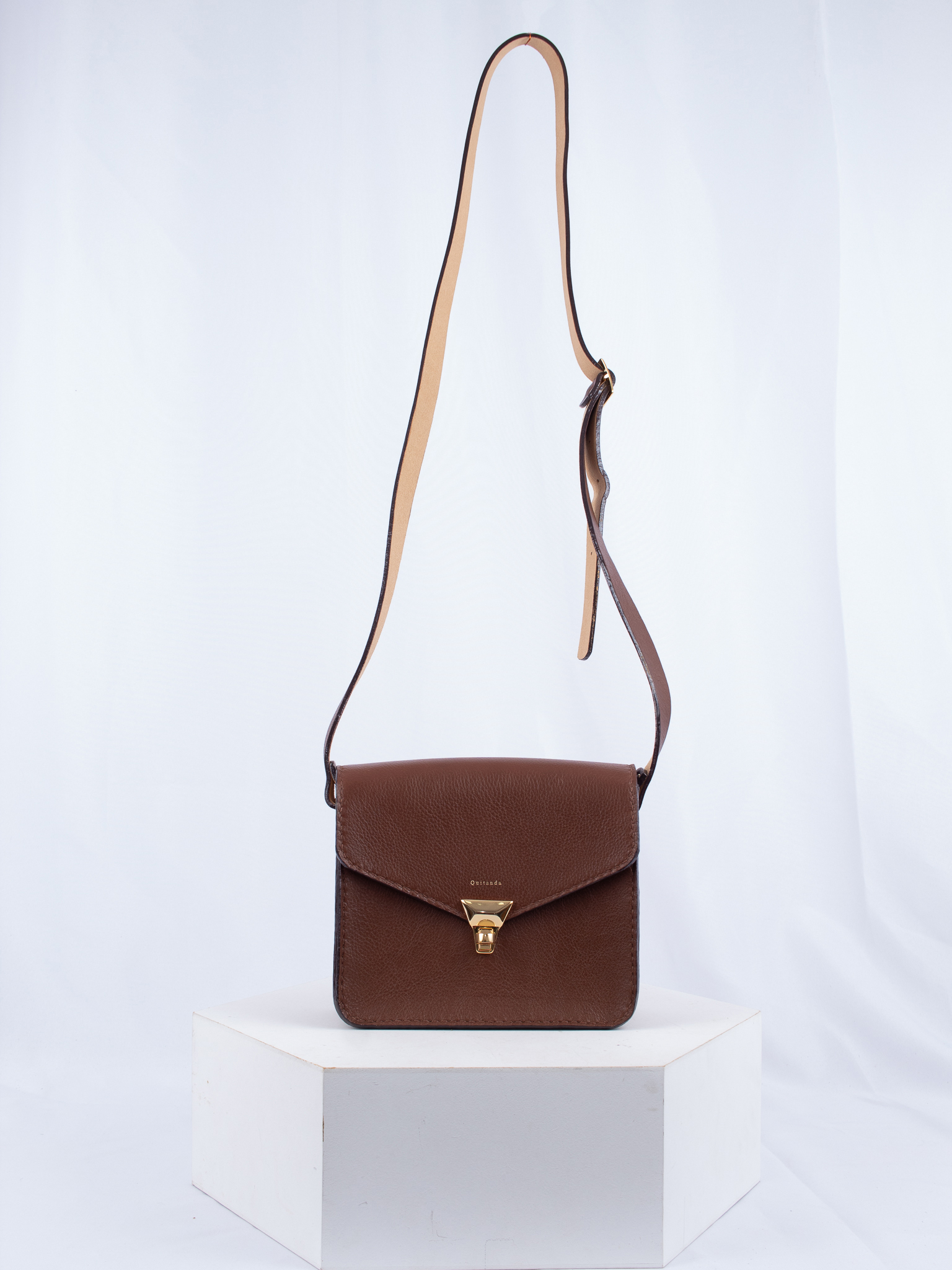 Bolsa de Couro tipo Vaqueta Travel na cor tabaco com forro em Pelica Cabra, toda feita à mão (assim como todos os produtos Quitanda) Uma bolsa coringa, para você usar no dia a dia, eventos, festas e passeio! Modelagem firme e estruturada, no formato clássico box. Alça longa de couro fixa com regulagem de altura pela fivela. Fecho torniquete.