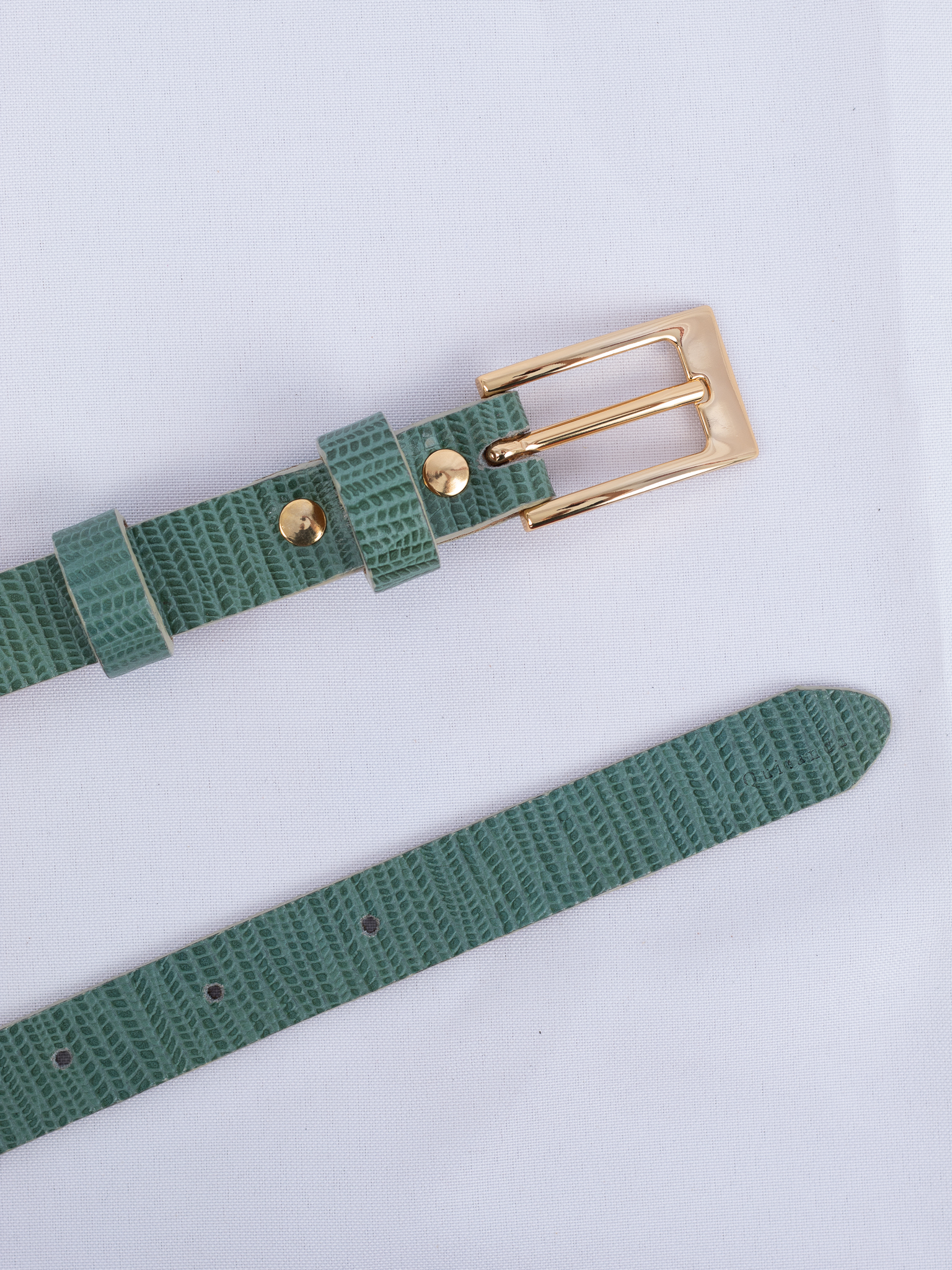 O Cinto Fino Oblong Verde Textura é feito para usar na cintura média e na cintura alta! Ideal para usar com jeans ou marcar a cintura de vestidos! É um ícone fashion para seu guarda-roupa e dá vida a qualquer look!