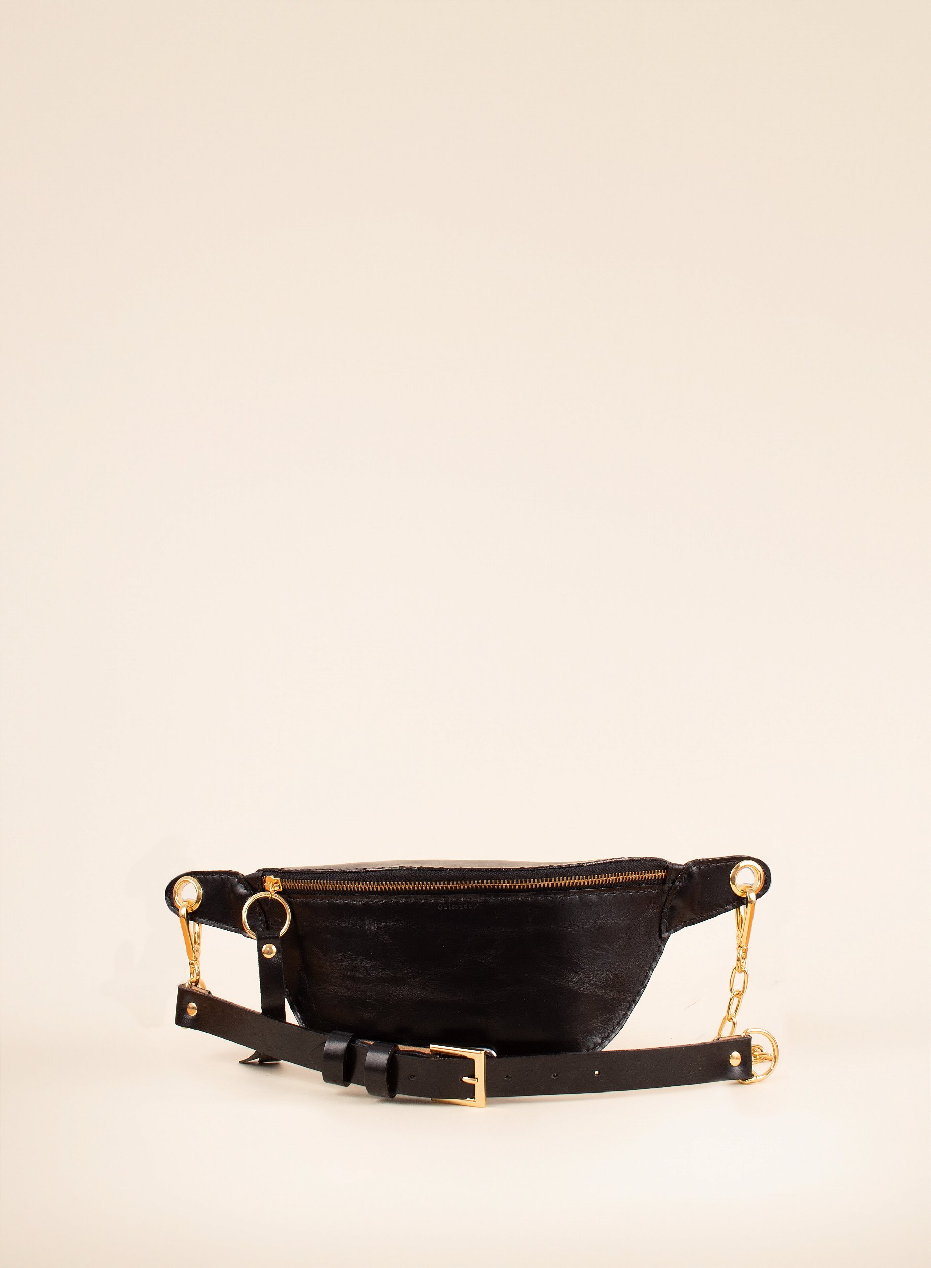 Essa é para quem quer praticidade e estilo na mesma peça! Feita em Couro Firenze preto e forrada com couro pelica de cabra. Possui um único compartimento principal com fechamento de zíper. A alça pode ser utilizada como cinto na cintura e também como alça curta ou transversal. Pode ser regulada tanto na fivela (no cinto de couro) quanto na corrente. Uma peça para ter total liberdade de movimento e ter acesso aos seus pertences de forma rápida e segura.